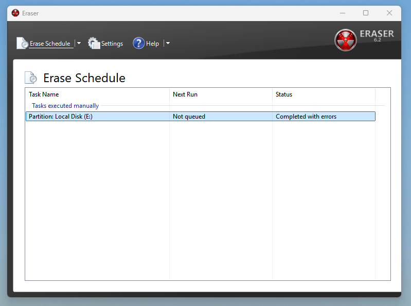 - Open the program and click the dropdown next to Erase Schedule in the top left. Click New Task.