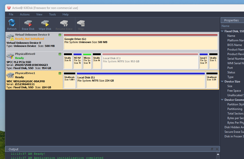 Active@ Kill Disk is a popular free and paid disk erasure tool that supports SSDs, HDDs, and USB drives. It comes with an easy interface and straightforward options. However, whenever I have used it, it does a 100% erasure without any errors. It has the sanitize feature if you opt for the paid version. Also, it has to be done through the KillDisk boot USB. The personal License can be purchased for $49.95.