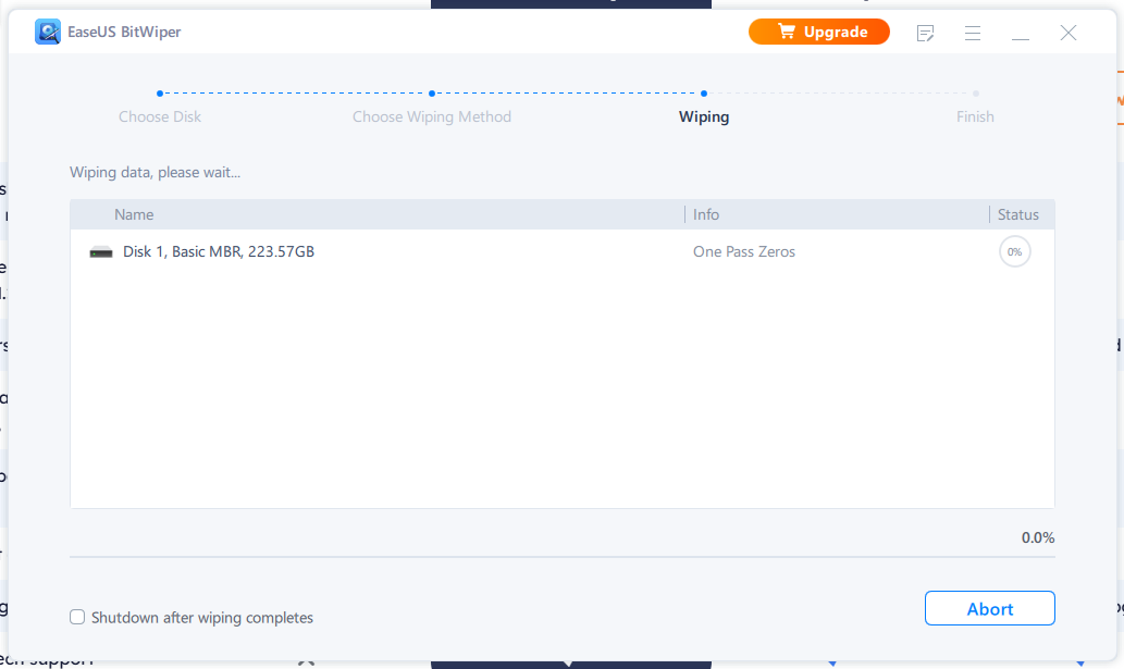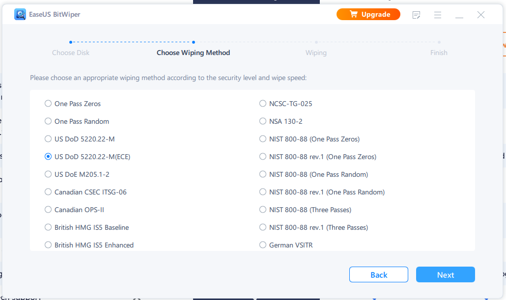 EaseUS BitWiper is perhaps the easiest to use among all these software. But, again, the free version offers the 1-pass zeros method. All other advanced secure erase methods are paid.