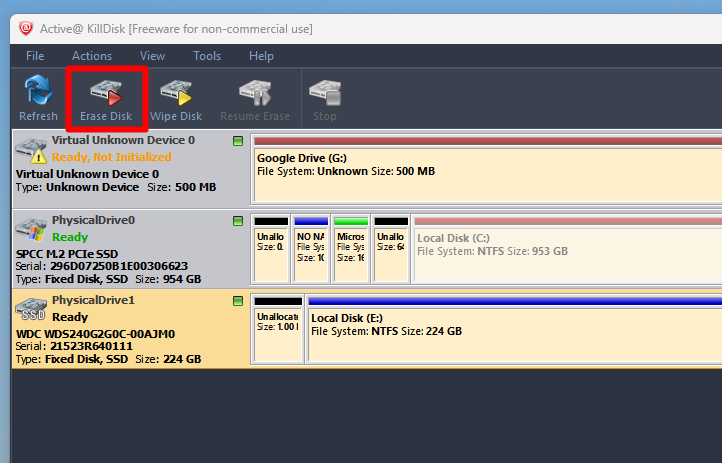 - Open the program and select the drive you want to erase.