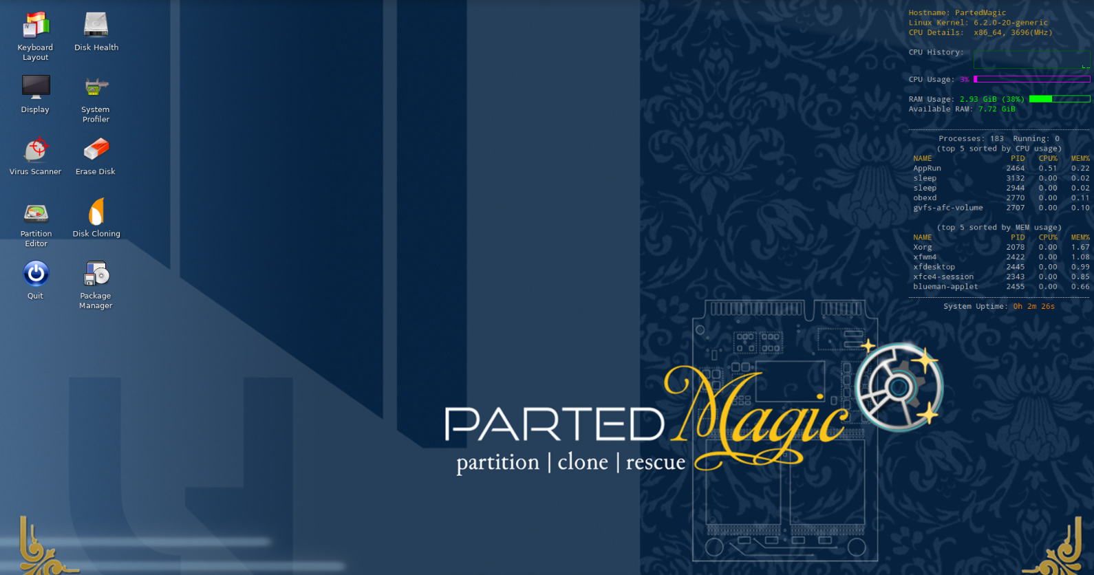 - Boot your system from this USB and enter the Parted Magic desktop.