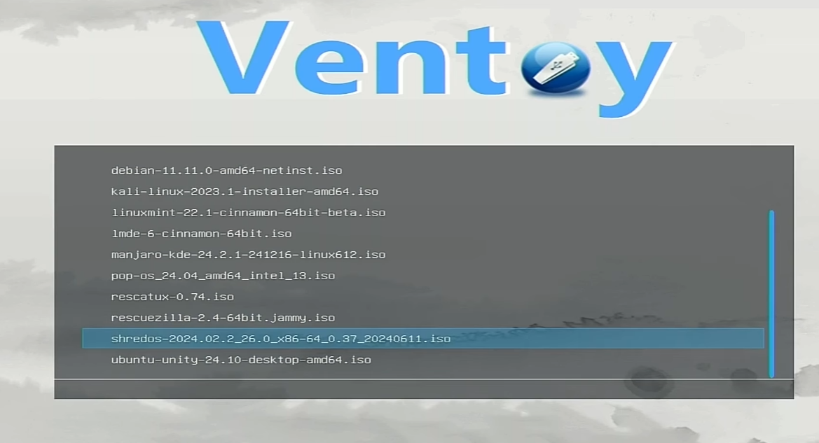5. Choose ShredOS from Ventoy’s first page.