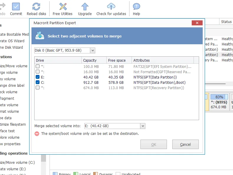 - Right-click your main C: drive and click Merge Drives. Then choose both your partitions and merge. Make sure to merge the secondary partition into the main C: partition.