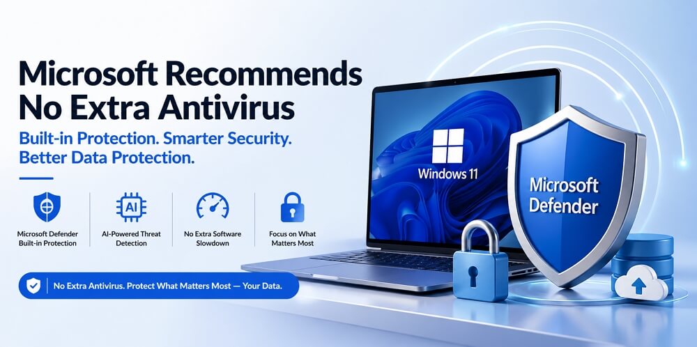 Microsoft believes its built-in security tools are strong enough for everyday threats. These tools are integrated into the system and updated automatically, making an extra antivirus unnecessary for most users.
