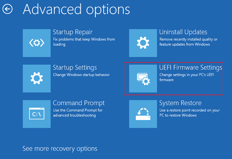 If your PC boots straight into Windows but skips the BIOS screen, in this case, you can use Windows Advanced Startup to directly enter UEFI firmware settings.
