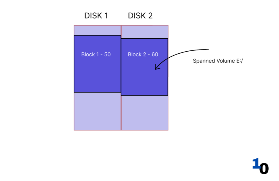 - These blocks are joined into a single spanned volume.