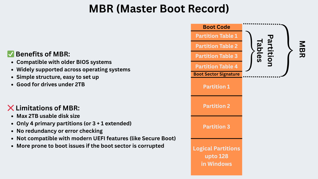 - Partition Types – Primary, Extended, Logical
