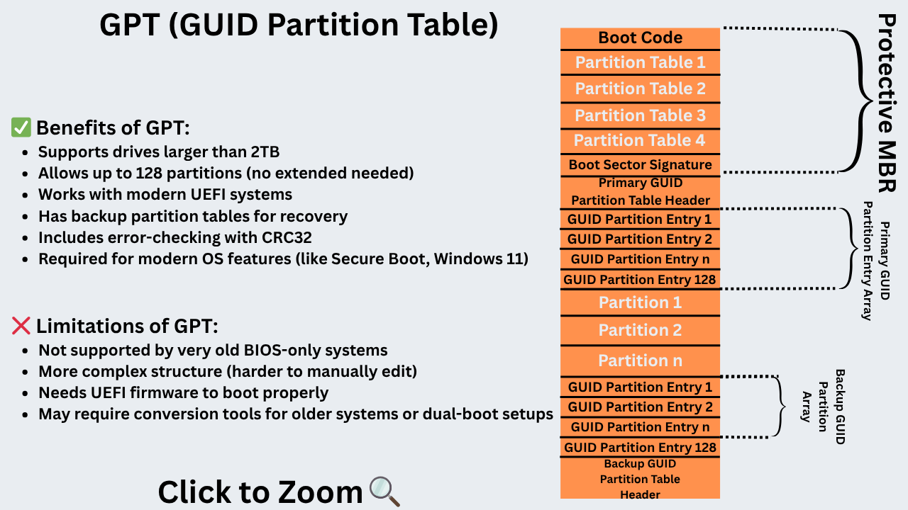 - Partition Table uses – MBR/GPT