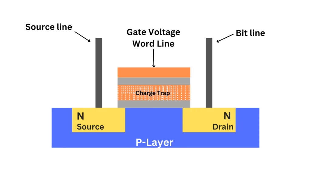 When we write the data, the memory cells are programmed at different charge levels. The place where the charge is actually stored is mainly charge-trap flash transistors. Earlier, they were floating gate transistors. You can know the difference here.